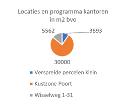 In de lopende grondexploitaties zijn de gronden met een gemengde bestemming, waarin kantoren mede zijn toegestaan, slechts deels als kantooroppervlak opgenomen de grondexploitaties. In Duin is 30.000 m² opgenomen en in de grondexploitatie Verspreide percelen klein is een oppervlak voor kantoren opgenomen voor Gooisekant en het Atelier. In het project Wisselweg 1-31 wordt planologisch ruimte geboden voor een gemengde bestemming, waarvan ruim 5.500 m² voor kantoren zal worden aangewend. Als deze kantooroppervlaktes zijn gerealiseerd in de komende 4 jaar, dan is er alleen nog sprake van bestaand kantorenvastgoed en onbenutte plancapaciteit.