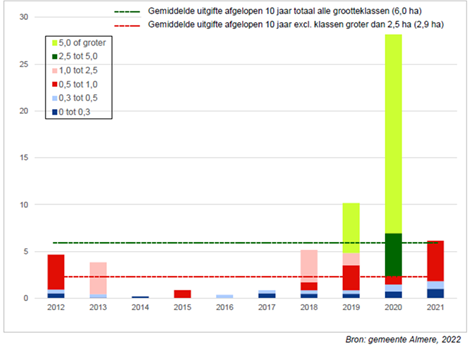 Uitgegeven bedrijfskavels Almere naar grootteklasse 2012 - 2021
