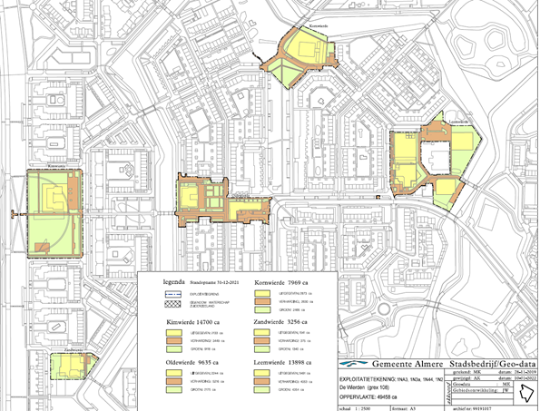 In deze grondexploitatie is sprake van deelgebieden namelijk de Laren en de Wierden. Hieronder staan voor beide deelgebieden de exploitatie tekeningen weergegeven. Het ruimtegebruik is samengevoegd in een tabel.
