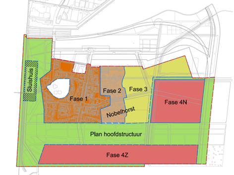 De gebiedsontwikkeling van Nobelhorst bestaat uit vier fasen en het Sluishuis. Fase 1 en fase 2 zijn grotendeels opgeleverd en de terreinafwerking is in volle gang. De ontwikkeling van fase 3 is gestart en de eerste kavels zullen in 2022 worden uitgegeven. De ontwikkeling en realisatie van fase 4 staat gepland voor de periode 2024 en verder. Het Sluishuis is een apart project in Nobelhorst. Het Sluishuis is gelegen tussen De Hoge Vaart en fase 1 en betreft de realisatie van circa 131 woningen gelegen aan een insteekhaventje dat de (vaar)verbinding naar de Hoge Vaart vormt. Het realiseren van deze verbinding is in voorbereiding.